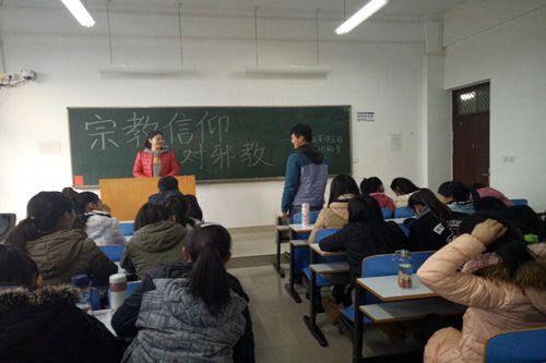 为引导同学们正确认识宗教问题,了解我国宗教信仰政策,12月4日中午,在球盟会团总支的组织下,各班积极开展宗教主题班会。