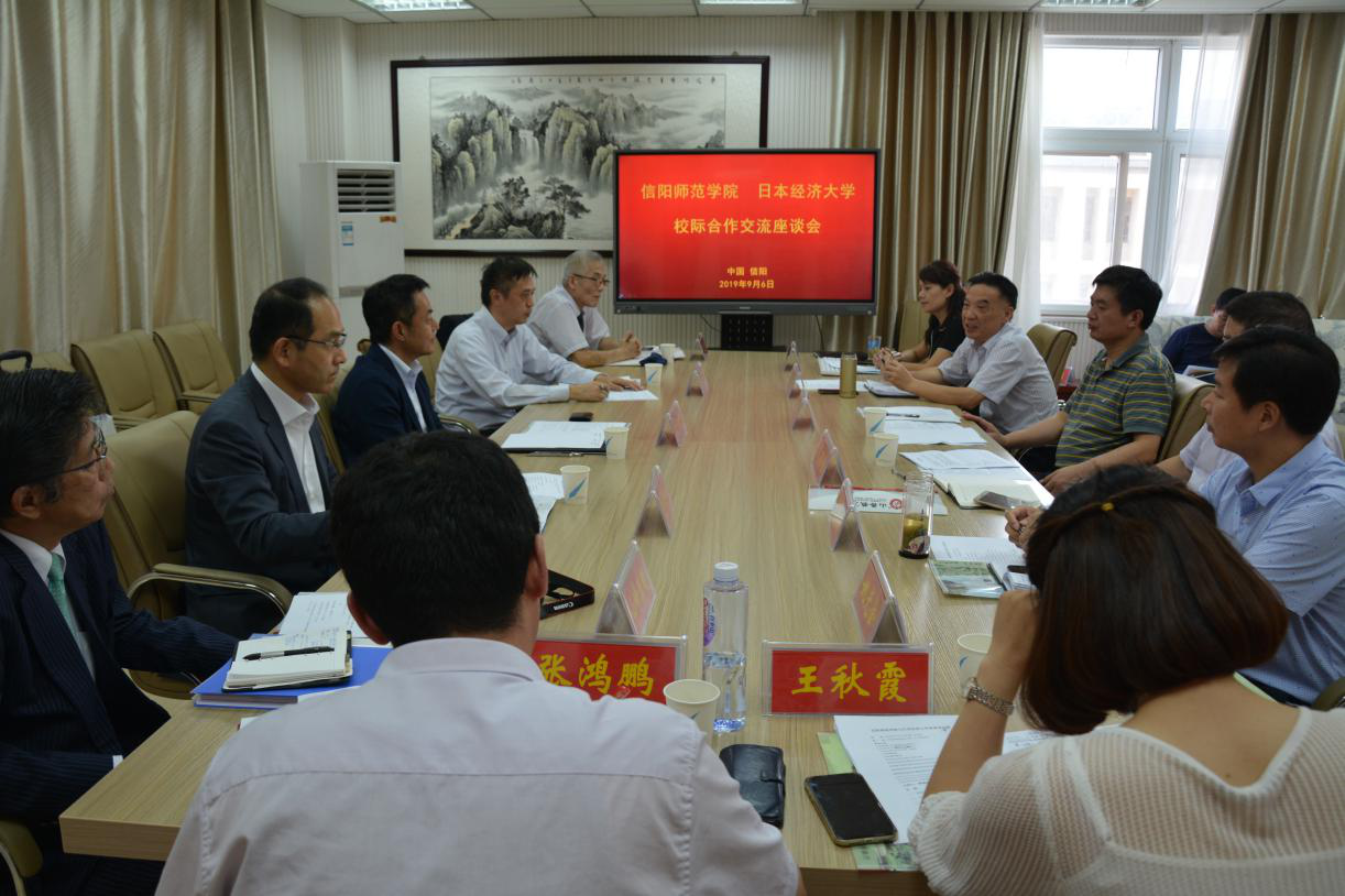 会议伊始,与会人员一同观看了信阳师范公司宣传片。余本海致欢迎辞,他代表公司对古贺郁人一行的到来表示热烈欢迎,简要介绍了公司的发展历史、团队建设、员工国际交流等情况。古贺郁人高度赞扬了公司浓厚的学习氛围,介绍了日本经济大学的办学规模、历史沿革和办学特色。随后,双方围绕签订合作交流协议、交换职工及双学位项目、科学研究等方面进行磋商。周学红总结讲话,他对日本经济大学的办学理念表示认同,希望双方尽快落实达成的共识,推动校际合作与交流向更高层次迈进。