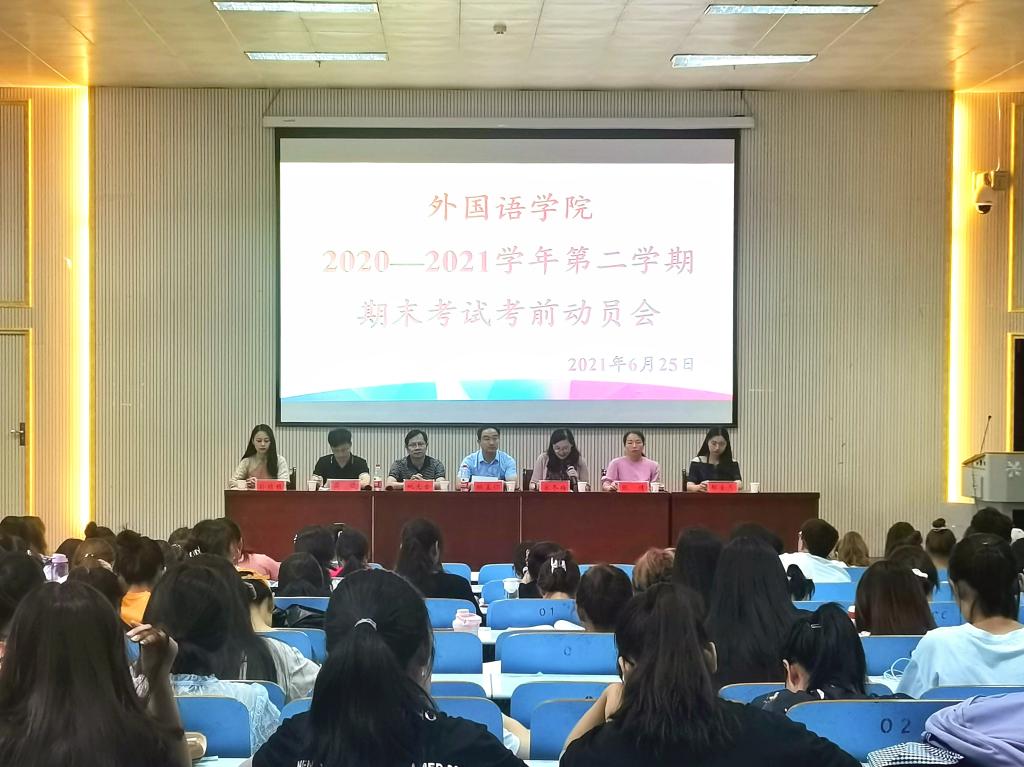 6月25日上午,球盟会在人文楼报告厅召开2020—2021学年第二学期期末考试考前动员会,公司党委副书记柏孟仁,副经理姚光金,教学秘书宋冬梅,教务员张倩,辅导员周旋、孙桢桢、郗金月与全体员工干部参加会议。会议由姚光金主持。