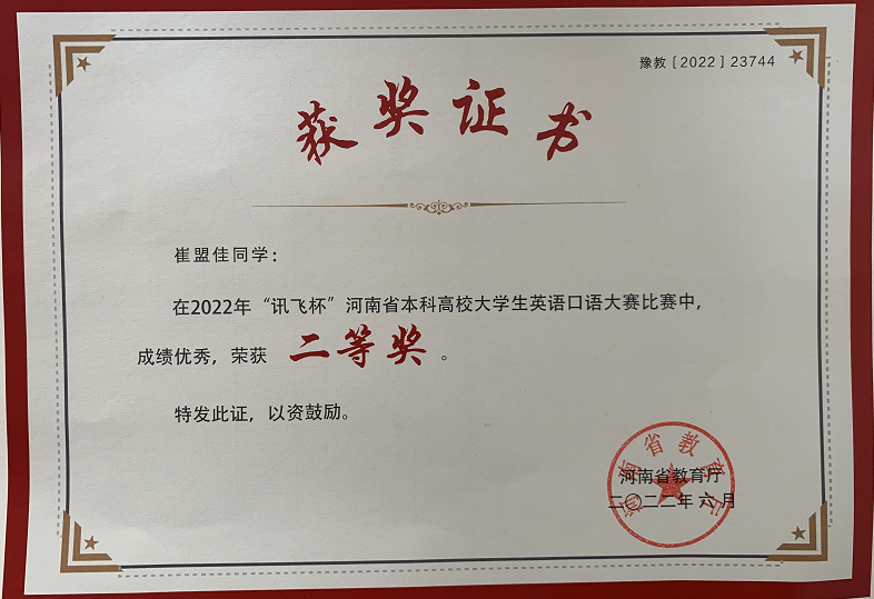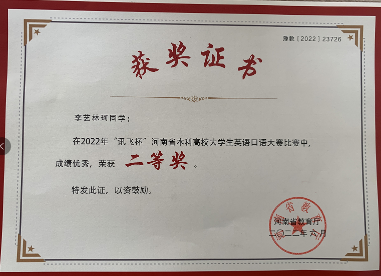 近日,“讯飞杯”河南省本科高校老员工英语口语大赛决赛在郑州落下帷幕,全省本科高校英语专业和非英语专业员工同台竞技英语口语。公司教务处和球盟会自今年4月份以来,精心组织公司700余名员工参加校园选拔赛,经线上初赛复赛、AI智能评分、专家现场评审、网上结果公示等环节,5名选手成功进入省级初赛和省级决赛,经过激烈角逐,公司学子李艺林珂、崔盟佳、连宵颖和王静然4位同学在省级初赛和复赛中表现优秀,荣获获本次口语大赛决赛二等奖,董嘉骐同学荣获大赛优胜奖。球盟会郭敏、王国喜、秦富强和李小静四位教师被评为赛事最佳指导教师奖。