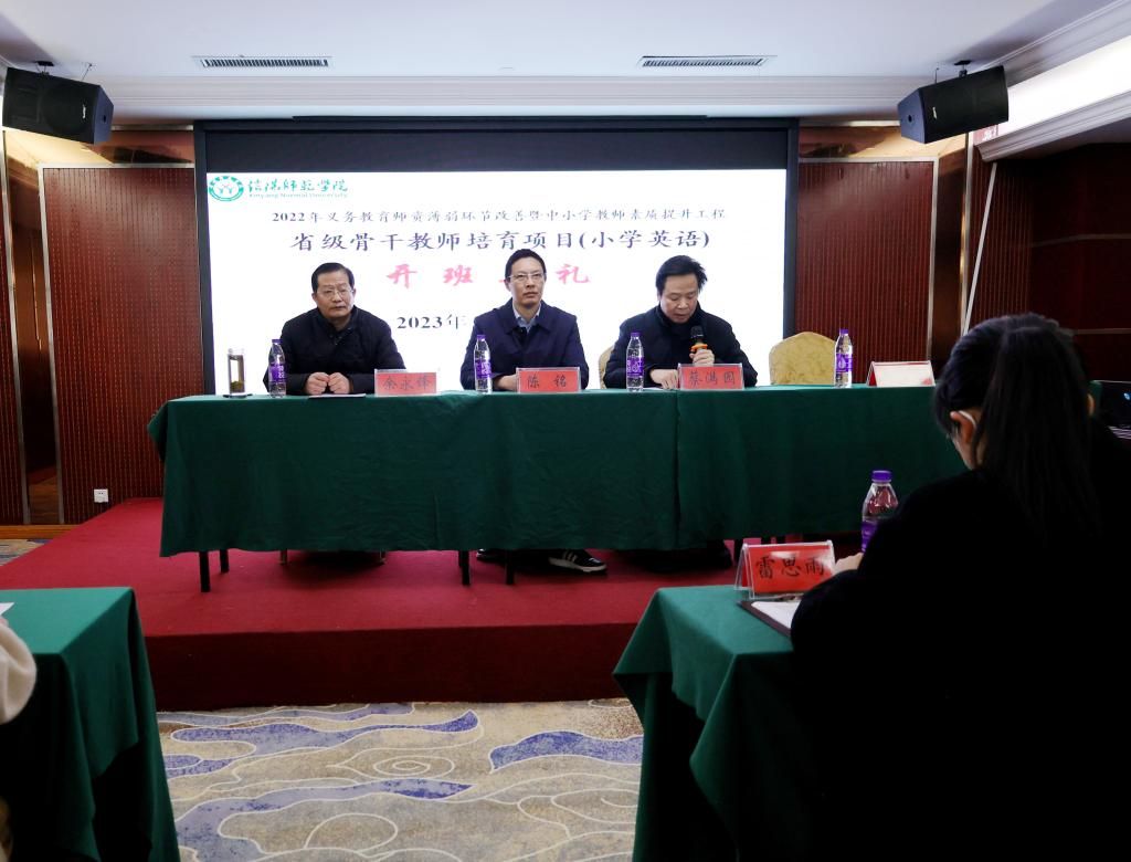 2月27日上午,2022年义务教育团队薄弱环节改善暨中小学教师素质提升工程升级骨干教师培育项目(初中/小学英语)开班典礼在维也纳国际酒店五楼贝多芬厅举行。公司党委书记陈铭,经理蔡满园,副经理余永锋,小学英语班班主任宋冬梅、曹慧琳,初中英语班班主任雷思雨、黄艳文出席典礼,来自驻马店、济源、漯河、信阳、南阳等五个地区市基础教育一线的118名学员参加典礼。开班典礼由余永锋主持。